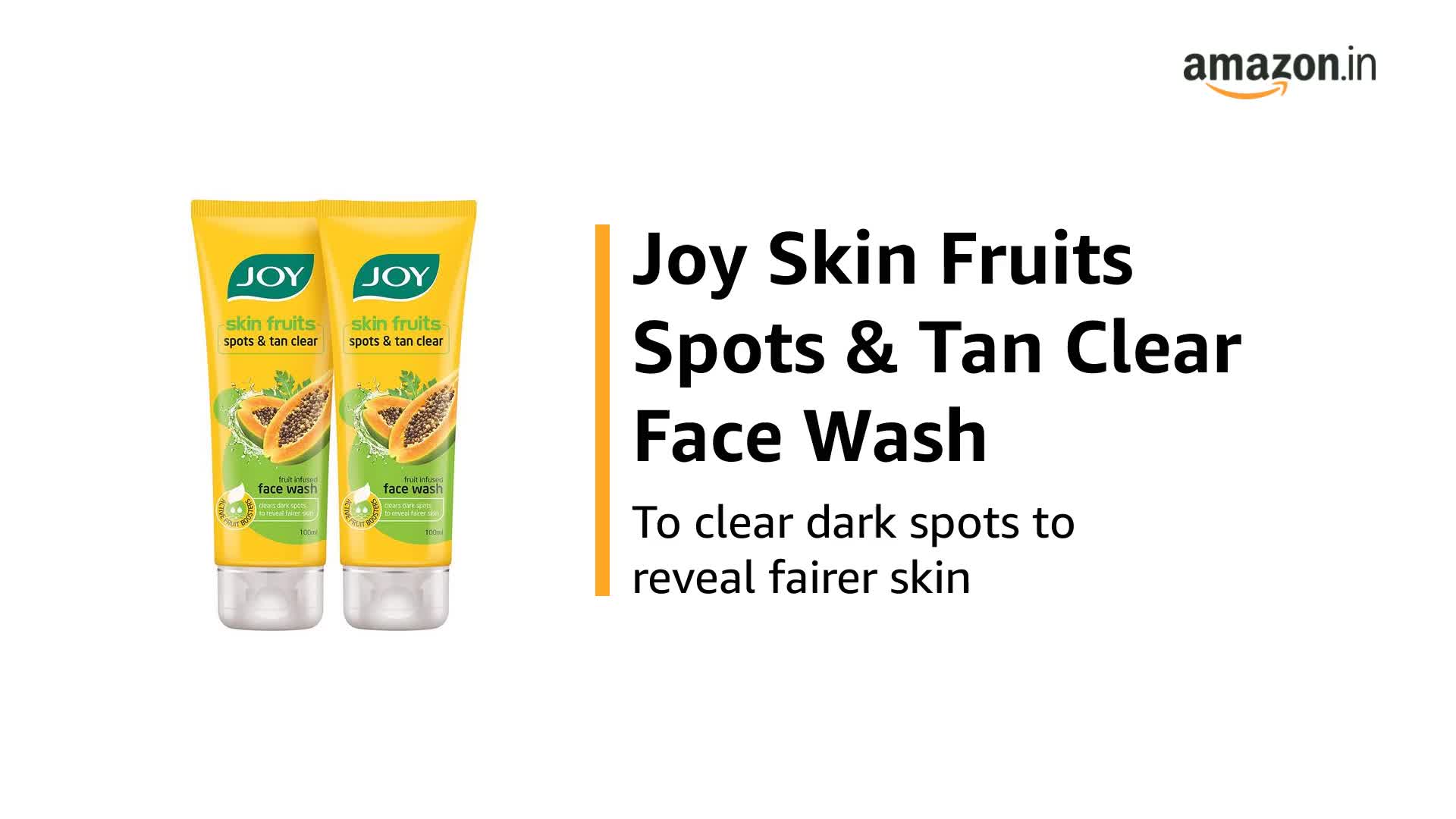 HomeBeautyFace CareCleansersFace WashJoy Skin Fruits Spots & Tan Clear Face Wash 100ml x2 | Enriched with Papaya & Vitamin C + A | For Healthy Glowing skin | Suitable for All Skin Types