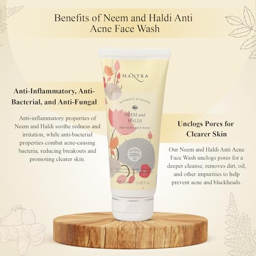 Enriched with bio-actives from neem haldi and aloe Vera this face wash helps unclog pores remove dirt and oil and stop outbreak of acne. Neem extracts rich in phenolic flavonoids soothe skin and are traditionally known to have anti-inflammatory bactericidal and antifungal properties. Curcuminoids found in haldi improve complexion and skin elasticity. Aloe Vera gel contains a plethora of antioxidants beta carotene vitamin c and e that help to soothe firm and heal the skin.