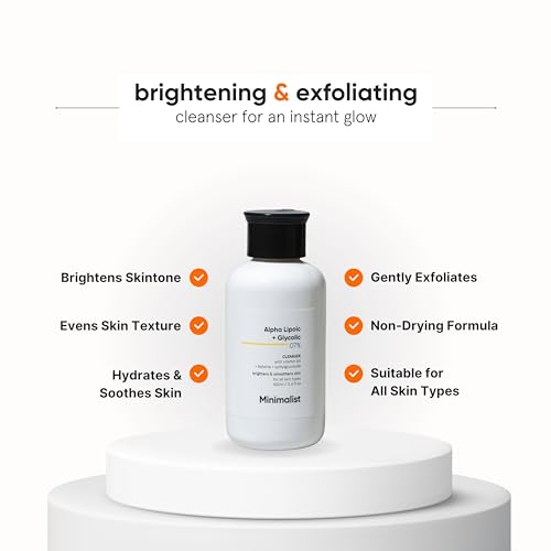 Minimalist 7% ALA + Glycolic Brightening Face Wash | With ALA For Glowing Skin, AHA for Exfoliation and Vitamin B5 For Hydration | Sulphate-free | Fragrance- free | For Men & Women | 100 ml