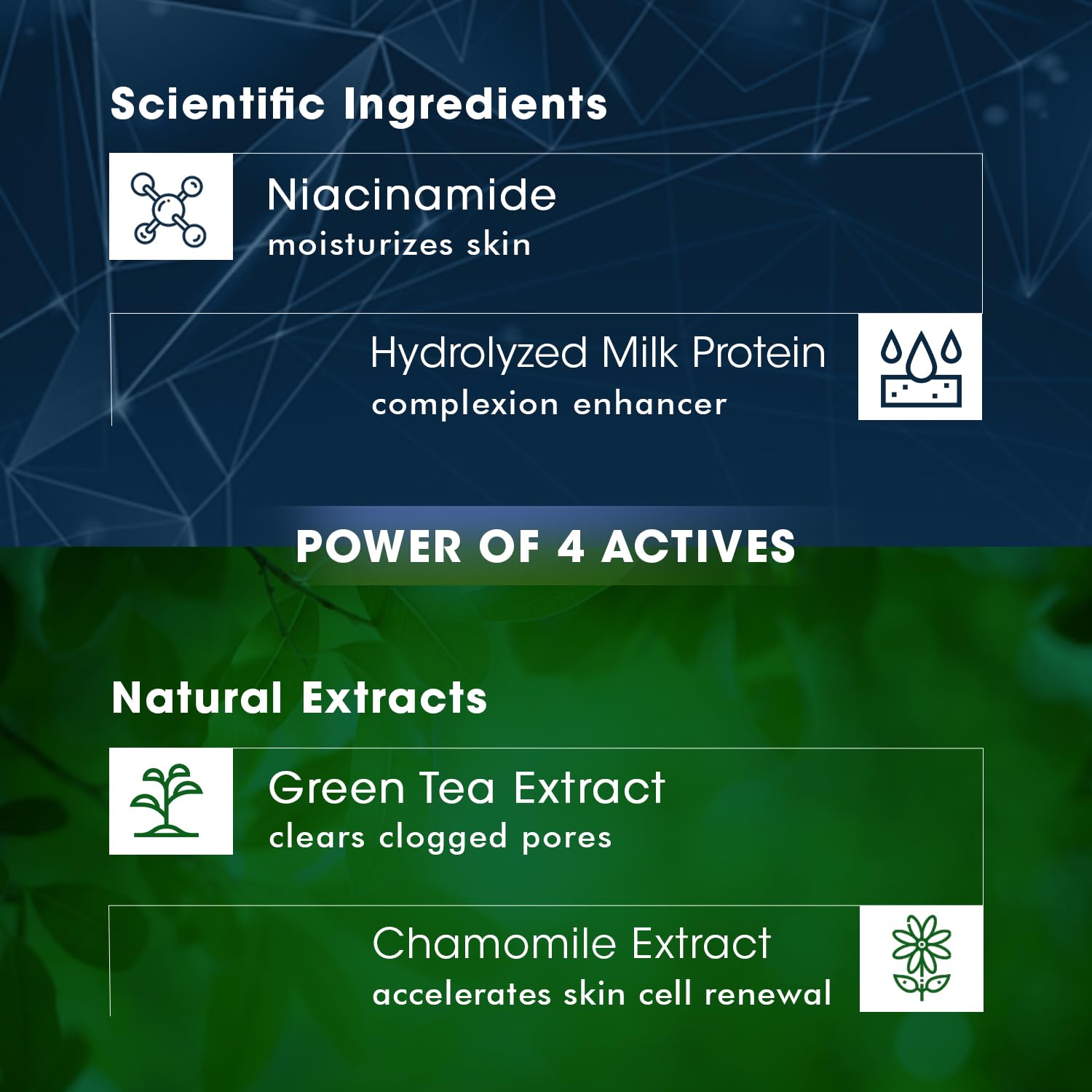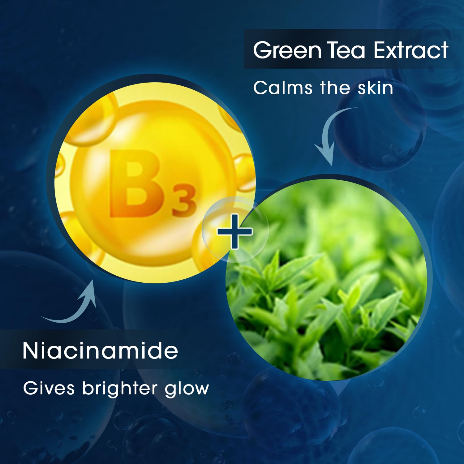 Powered with Niacinamide & Green Tea Extracts this foaming face wash rejuvenates dull and lifeless skin leaving it visibly clearer whiter and brighter. This potent creme formula lifts dirt grime excess oil make-up and impurities while giving skin its much needed optimum balance of nutrients for a gleaming bright complexion.