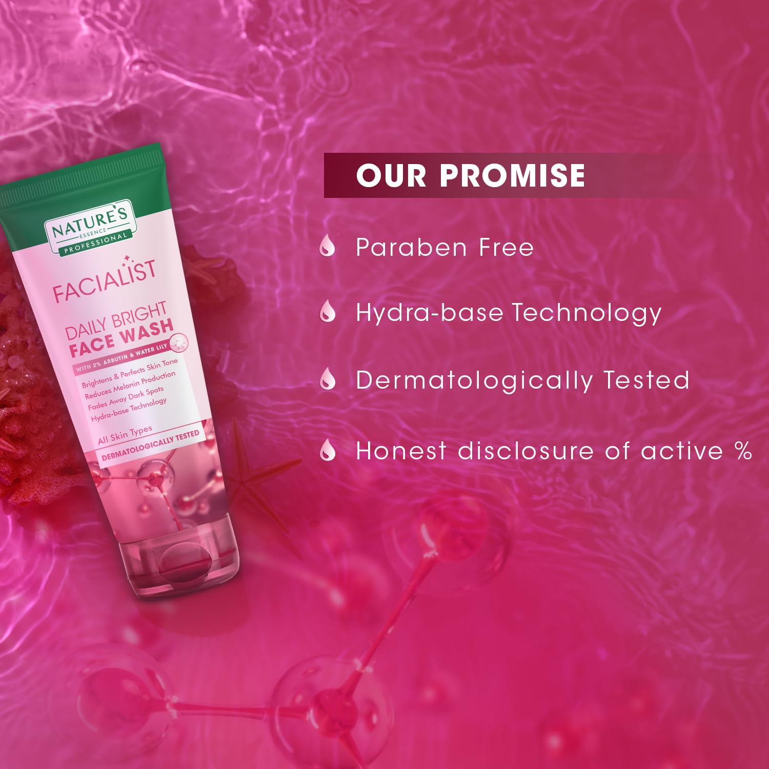 Powered with 2% Arbutin and Water Lily this pearlised foaming face wash gives dull and dry skin its much needed daily lift. Its deep action formula removes dirt grime excess oil make-up and impurities revealing visibly brighter and dramatically softer skin.