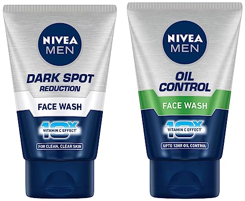 Nivea Men Face Wash, Dark Spot Reduction, 100g & Men Face Wash, Oil Control, 10x Vitamin C, 100g