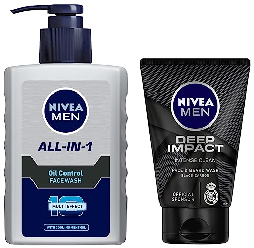 NIVEA MEN Face & Beard Wash Deep Impact Intense Clean 100mlNivea Men Deep Impact is used to intense clean of face and beard. It is also known as Black Carbon.NIVEA MEN Face Wash All-in-One Oil Control 150mlNivea Men Oil Control All In One Face Wash Pump 150ml