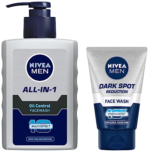 NIVEA Men Face Wash, Oil Control, 10x Vitamin C, 150ml And NIVEA Men Face Wash, Dark Spot Reduction, 100g
