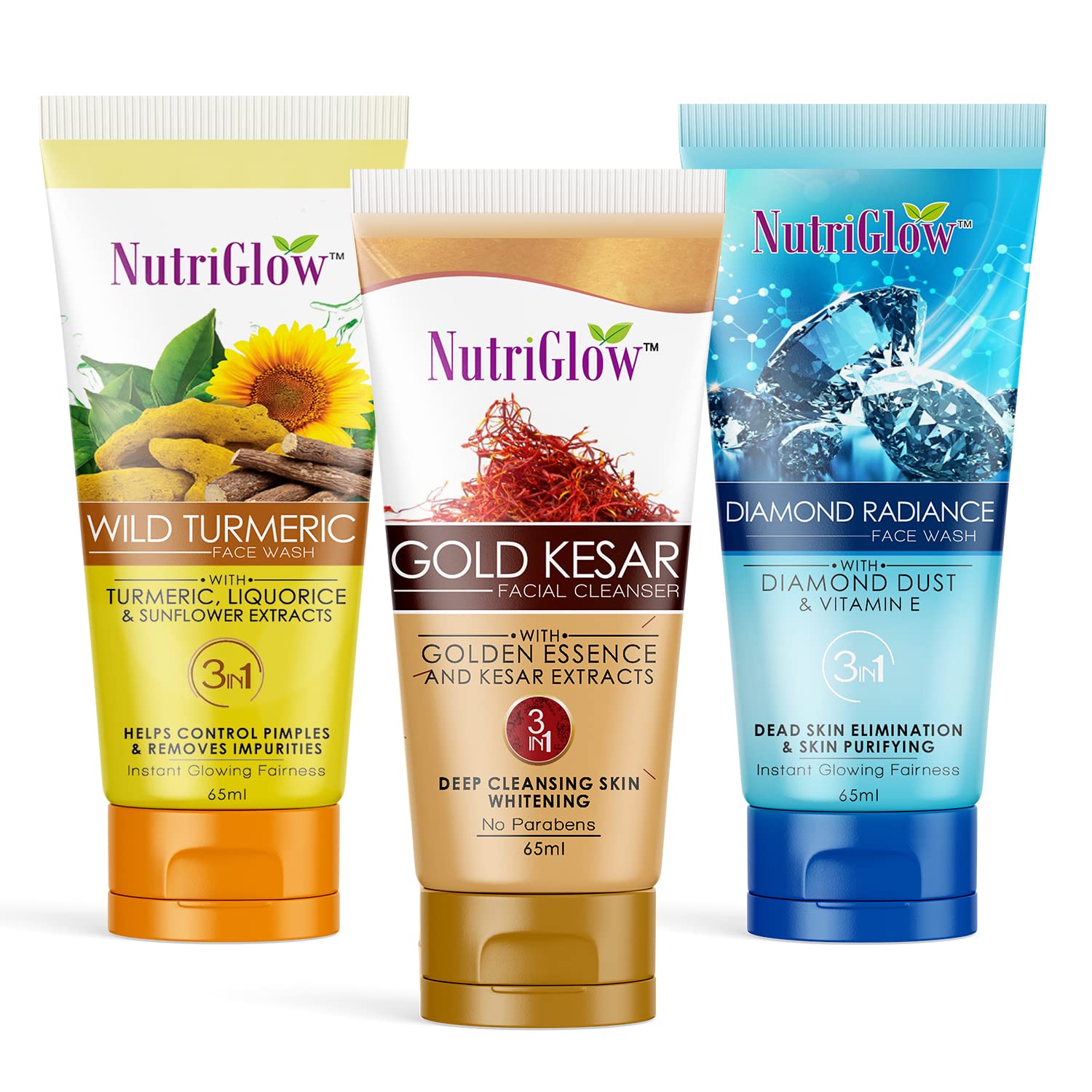 NutriGlow Diamond Radiance Face Wash Neem & Tulsi Face Wash & Wild Turmeric Face Wash For Reduce Pigmentation Fight With Pollution & Dust 65ml Each Pack of 3