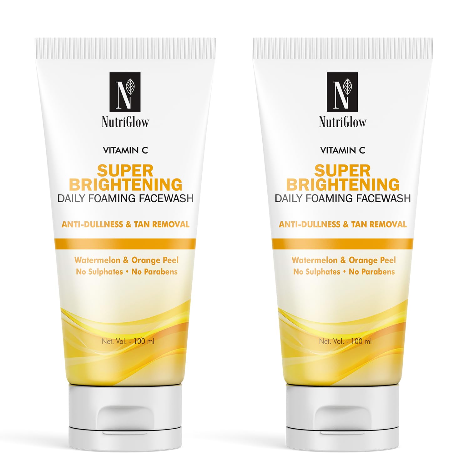 NutriGlow Vitamin C Daily Foaming Face Wash with Orange Peel Oil Control Sulphate Free For glowing All Skin Types For Men And Women (100 ml) Pack of 2