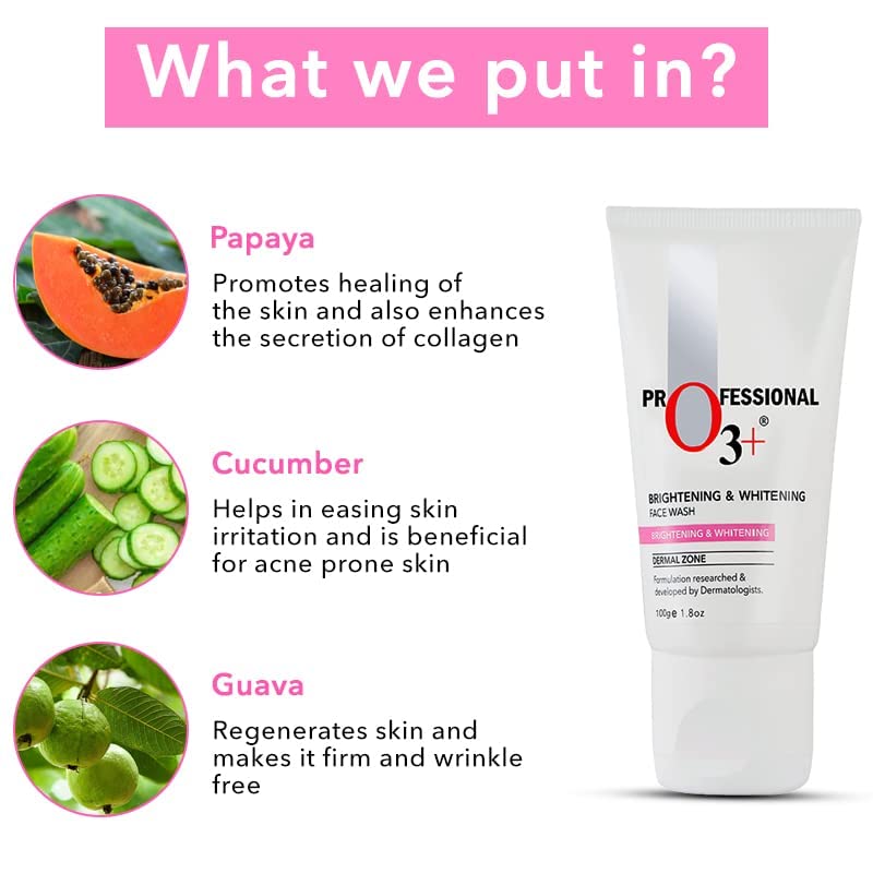 O3+ Brightening & Whitening Face Wash with Cucumber and Aloe Vera Extracts For Sensitive & All Skin Type (100ml)