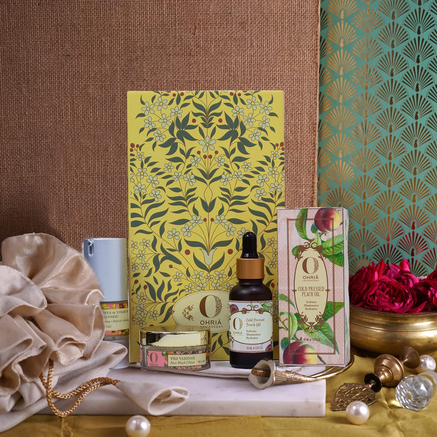 This Skin rejuvenating box has been specially curated for you to sparkle through this festive season. An all Natural box consisting of products having ethically sourced ingredients with Ayurvedic botanicals to enhance your beauty naturally. The box contains Tej Vardak Ubtan for removing dead cells & revealing a healthy glow Papaya and Yoghurt cleanser which is enriched with papaya & soya extracts to gently draw out deep seated impurities & Cold pressed Peach oil extracted from hand picked peaches from Hills of Kumaon Uttarakhand nourishes & imparts a healthy glow.