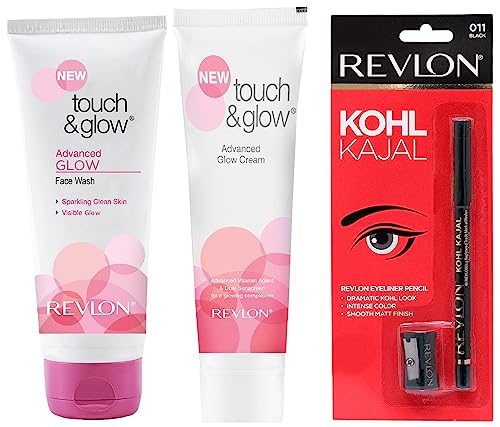 Revlon Kohl Kajal Eye Liner Pencil With Sharpener, Black, 1.14g & Revlon Touch and Glow Advanced Fairness Cream (75g) & Revlon Touch and Glow Advanced Fairness Face Wash, 100g