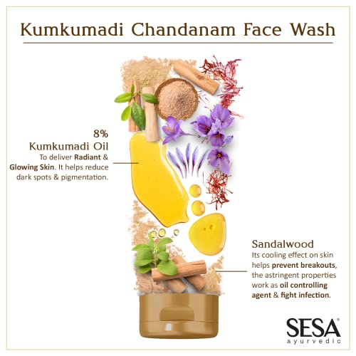 HomeBeautyFace CareCleansersFace WashSESA 8% Kumkumadi Chandanam Face Wash 100ml | Glowing Skin, Cleanses without Drying I For Men & Women All Skin Types | Dermatologically Tested