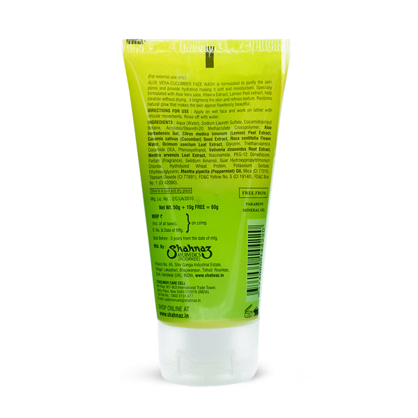 ALOE VERA-CUCUMBER FACE WASH is formulated to purify the skin pores and provide hydration making it soft and moisturised. Specially formulated with Aloe Vera juice, Kheera extract, Lemon Peel extract, help cleanse without drying, it brightens the skin and refines texture. Restores natural glow that makes the skin appear flawlessly beautiful.