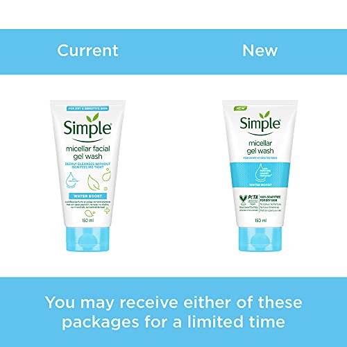 At Simple we're all about making products which are kind to skin and have skin-loving ingredients. All our products are free from colour perfume and a strict list of 2000+ harsh chemicals (we call them baddies). Simple Water Boost Micellar Facial Wash thoroughly washes away make-up dirt and other impurities leaving your skin feeling clean fresh hydrated and revived. Simple Water Boost Micellar gel wash with moisture magnet pentavitin helps to give you a dewy hydrated skin. It is suitable for dry skin and it helps remove oil impurities and dirt without drying out skin to help retain skin's moisture. Made with skin-loving ingredients and 4% hydrating actives this face wash is 100% Soap Free contains plant-derived Pentavitin prebiotic and vital vitamins such as Vitamin E and pro-vitmain B5 to provide instant hydration to cleanse your skin without making it dry. This cleanser does not contain: More than 2000 ingredients amongst which: colour perfume drying alcohol parabens animal-derived and all kinds of harsh chemicals that can upset your skin. Because your skin does not need it at all!. Simple products are dermatologically tested and approved and ophthalmologically tested specially designed for sensitive skin users vegans hypoallergenic and non-comedogenic. This facewash is also suitable for oily dry and combination skin for both men and women. With more than 50 years of heritage in caring for the most sensitive skin Simple UK's No.1 facial skincare brand is all about making products which are kind to skin animals and planet. We make sure that we respect your skin always and that's why all our products are tested even on the most sensitive skin. Simple is everything your skin needs nothing it doesn't!