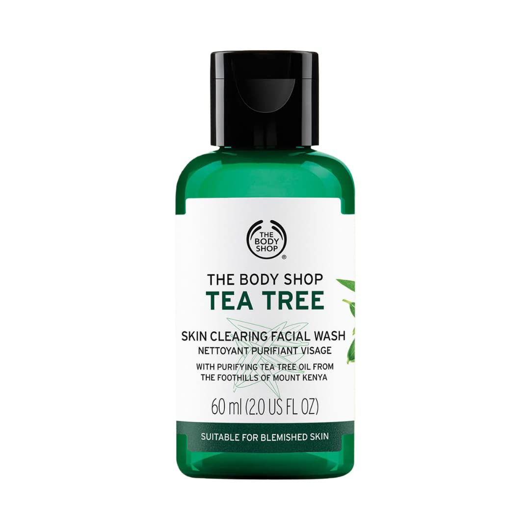 The Body Shop's Tea Tree Skin Clearing Facial Wash infused with Community Trade tea tree oil is a gel-based face cleanser for blemish-prone skin. The cooling lather works to remove impurities and excess oil for clearer-looking fresher-feeling purified skin.