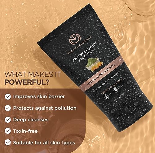 The Man Company's carefully designed Anti-Pollution Face Wash helps remove traces of excess oil dirt grime and pollutants while keeping your skin's softness and moisture intact. Antioxidant-rich Matcha improves skin barrier function making it ready to face environmental stressors daily. As a natural exfoliator Orange Peel promotes cell regeneration and evens tone.
