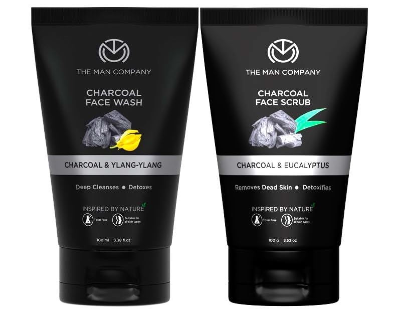 The Man Company Charcoal Face Scrub with Face Wash for Deep-Cleanse Pores, Exfoliation, Anti- Acne, Blackhead Remover, Brightens Skin