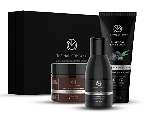 The Man Company Detan Facial Kit - Charcoal Face Wash, Charcoal Scrub, Daily Moisturising Face Cream | Best Detan Care - Pack of 3