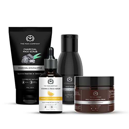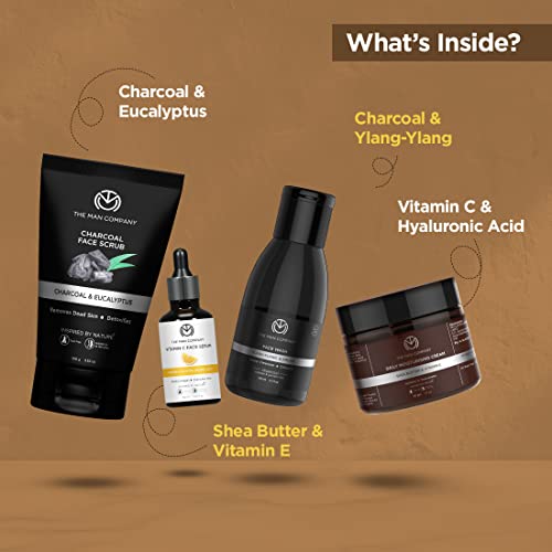The Man Company Face on Point Facial Kit with Vitamin C Serum, Charcoal Face Wash & Face Scrub, daily Moisturizing Cream | Soft & Supple Skin | Gift Set for Him