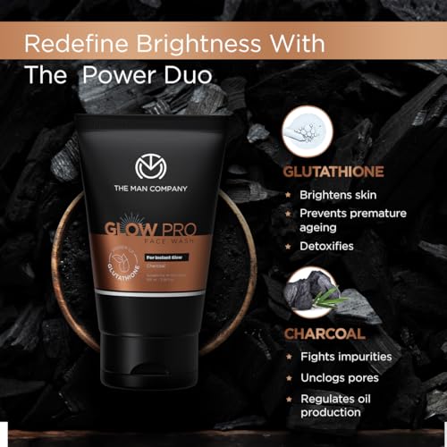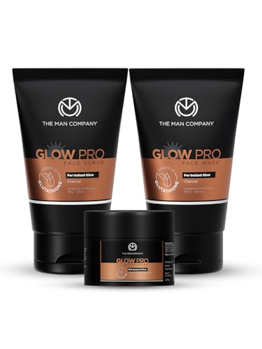 The Man Company Glow Pro Face Care Kit | Face Wash, Face Scrub & Moisturising Face Cream | Cleanses, Exfoliates & Moisturises | Charcoal, Glutathione, Cocoa Butter & Vitamin E | Gift Set of 3