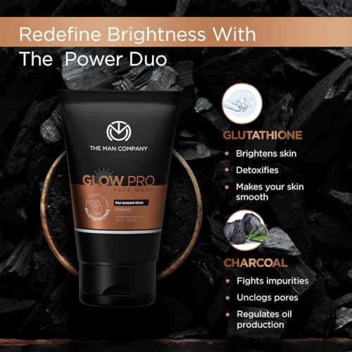 The Man Company Glow Pro Face Wash for Men - 100ml | Enriched with Glutathione, Charcoal | Instant Glow, Deep Cleansing & Evens Skin Tone | Men's Face Wash for Dry Skin | Toxin Free