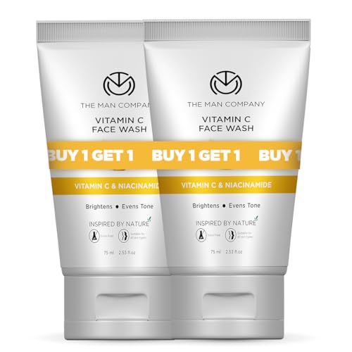 The Man Company Skin Brightening (Buy 1 Get 1) Vitamin C Face Wash- 75 ml Each with Turmeric and Niacinamide For Clean, Bright & Soft Skin I Oil Free Look I Unclog Pores,Instant Glow