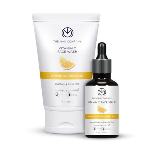 The Man Company Ultimate Vitamin C Face Care Kit with Face Wash & Face Serum | Boost Collagen | Glowing & Brightening Skin | Soft & Supple (2 Items in the set)