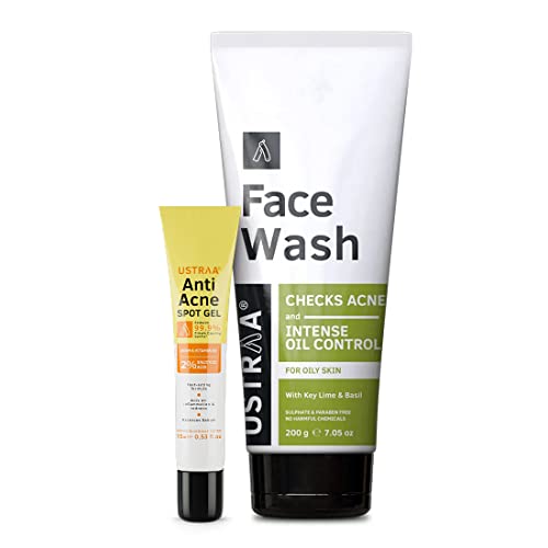 Ustraa Anti-Acne Kit - Anti-Acne Spot Gel - 15ml | Reduces 99.9% Pimple-Causing Germs, With 2% Salicylic Acid & Neem & Face Wash - Oily skin - 200g - Specially formulated for Oily Skin.