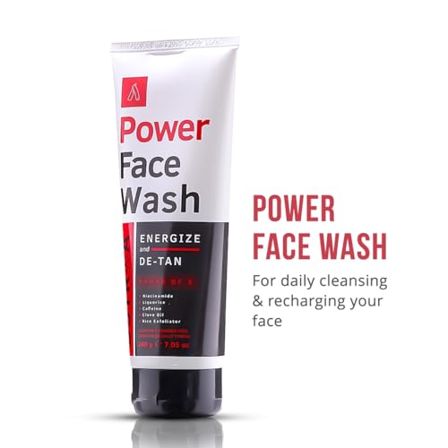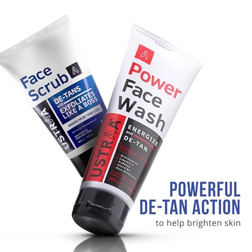 Ustraa De-Tan Face Scrub for Men, 100g | Exfoliation & Effective Tan Removal | No SLS & Power Face Wash - 200g - Energize & De-Tan | Helps Effectively Remove Tan, Brightens Skin