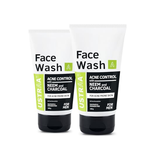Ustraa Face Wash Acne Control - With Neem & Charcoal - 100 g x 2 - Oil control, Prevents Acne, Especially for Oily skin | Keeps Face Non-Sticky, Non-Oily | No SLS, No Paraben
