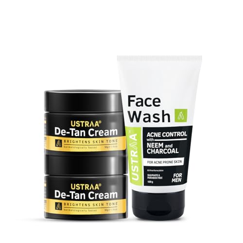 Ustraa Face Wash Acne Control - With Neem & Charcoal - 100g - Oil control, Prevents Acne & De-Tan Face Cream For Men - 50g x 2 - (Set of 2) | Even Skin tone, For Effective Tan Removal, Without Bleach