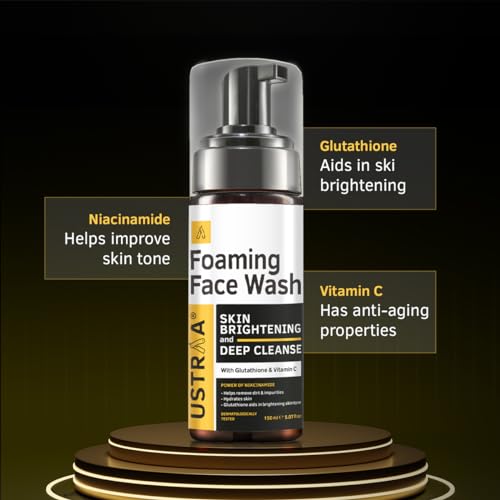 HomeBeautyFace CareCleansersFace WashUstraa Foaming Face Wash - 150ml - Skin Brightening & Deep Cleanse | with Glutathione & Vitamin C | Helps in Effective Removal of Dirt & Tan | Hydrates Skin | NO SLS, NO PARABEN