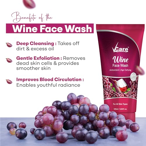 • DEEPLY CLEANSES SKIN: Vcare wine face wash is enriched with grapeseed extract a powerful ingredient that helps to resist aging and gives a youthful appearance. It effectively evens out skin tone.Natural ingredients in our face wash effectively remove toxi