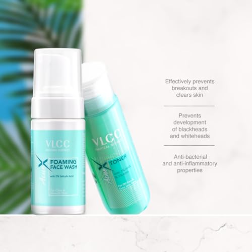• VLCC Acne X Foaming Face wash with 2% Salicylic Acid (100ml) + Toner For Oily Free & Even Skin Tone (125ml) is a 2-step anti-acne regime that effectively prevents acne and clears out skin.