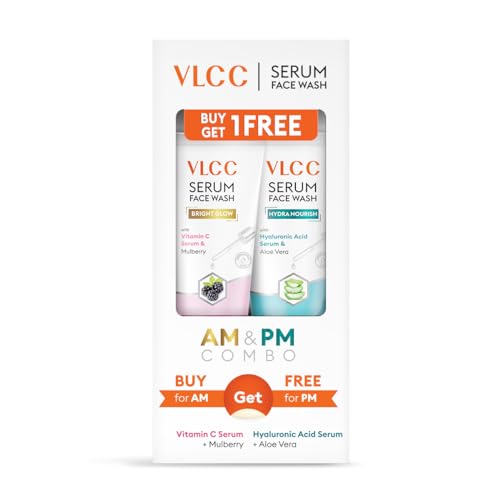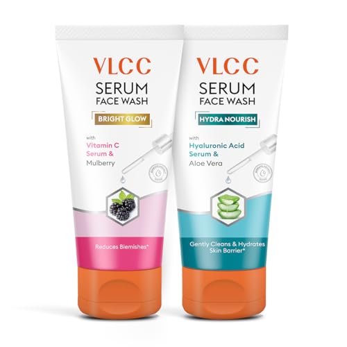VLCC Vitamin C & Mulberry Serum Facewash - 150 ml to Reduce Blemishes & Brighten for AM | with Free Hyaluronic Acid & Aloe Vera Serum Facewash - 150 ml to Strengthen Skin Barrier for PM (B1G1)