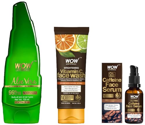 WOW Skin Science Caffeine Face Serum - Quick Absorbing - Oil Free - Anti-Aging& Science Brightening Vitamin C Face Wash&Science 99% Pure Aloe Vera Gel For Face,Skin&Hair - 150Ml