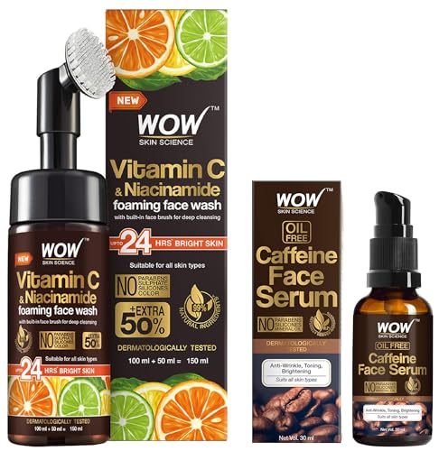 WOW Skin Science Caffeine Face Serum - Quick Absorbing - OIL FREE - Anti-Aging & WOW Skin Science Brightening Vitamin C Foaming Face Wash Combo