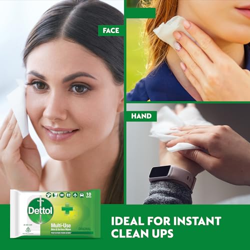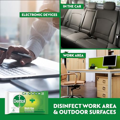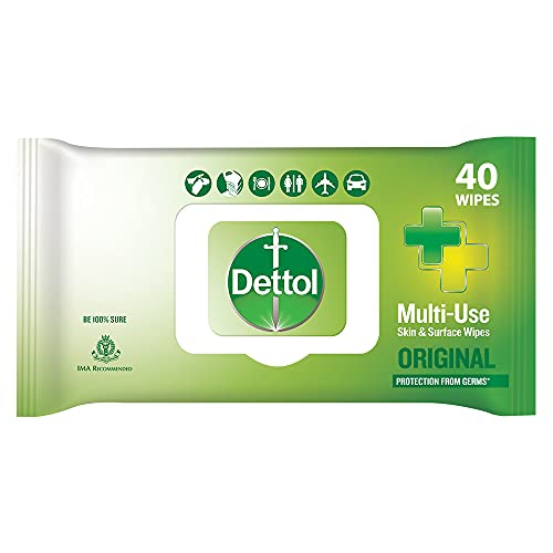 Dettol's Disinfecting Skin & Surface Wipes are Safe on Skin Ideal to Clean Multiple Surfaces Easy to carry with a resealable Moisture-lock lid. Dettol disinfecting wipes are practical for everyday use on furniture taps sinks door knobs kitchen bathroom surfaces floor cleaning childrenâs surfaces and places that are germ hotspots. It can be used on most hard non-porous surfaces including Finished Wood Sealed Marble Stainless Steel Laminated Floors Glass and Plastic.