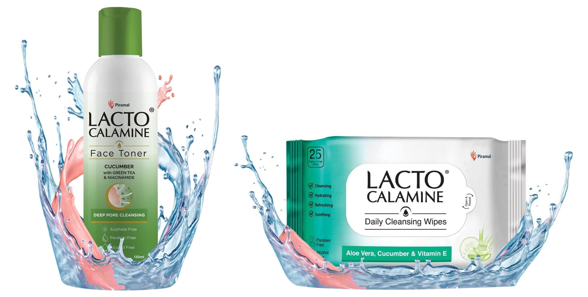Lacto Calamine Cucumber Face Toner with Green Tea & Niacinamide for cool and hydrated skin. Tightens pores & evens skin tone. Suitable for Oily and Acne prone skin. No Parabens No Sulphate No Alcohol - 120 ml x Pack of 1Lacto Calamine Cucumber toner with Green tea and Niacinamide cleanses the skin and tightens the pores. Niacinamide controls excess oil on the skin while cucumber extracts keep the skin cool and hydrated. The natural properties of green tea extracts makes the product suitable for oily and acne prone skin.Lacto Calamine Daily Cleansing Face Wipes with Aloe Vera Cucumber and Vitamin E (25 wipes) Pack of 1Lacto Calamine Daily Cleansing Wipes are face wipes that gently cleanse your skin from impurities dirt & pollution. Aloe Vera & Cucumber soothes and refreshes your skin while Vitamin E acts as an antioxidant protecting your skin.