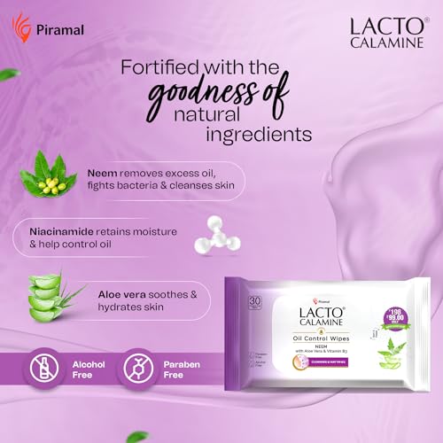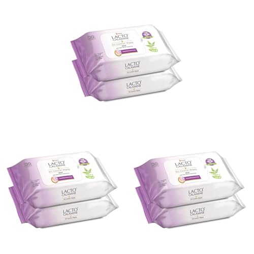 HomeBeautyFace CareCleansersFace WipesLacto Calamine Oil Control Face Wipes | 30 N each- Pack of 6 | Wet Wipes for Face With Neem, Aloe Vera & Niacinamide | Makeup Remover Wipes | Hydrating, Refreshing, Soothing | Pararben & Alcohol Free