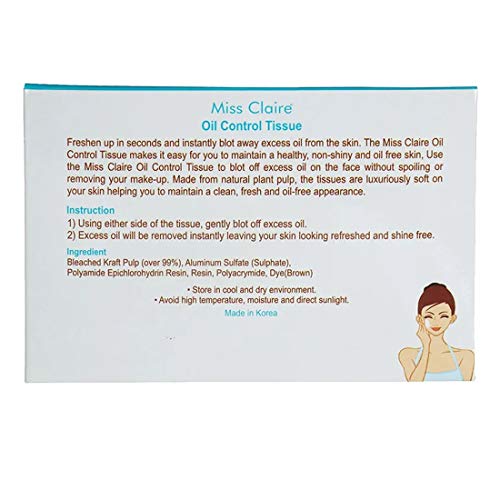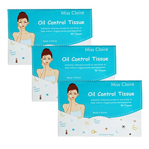 Miss Claire Oil Control Tissue/Oil Absorbent Dry Paper Wipes for Men and Women (150 Tissues/Pack of 3)