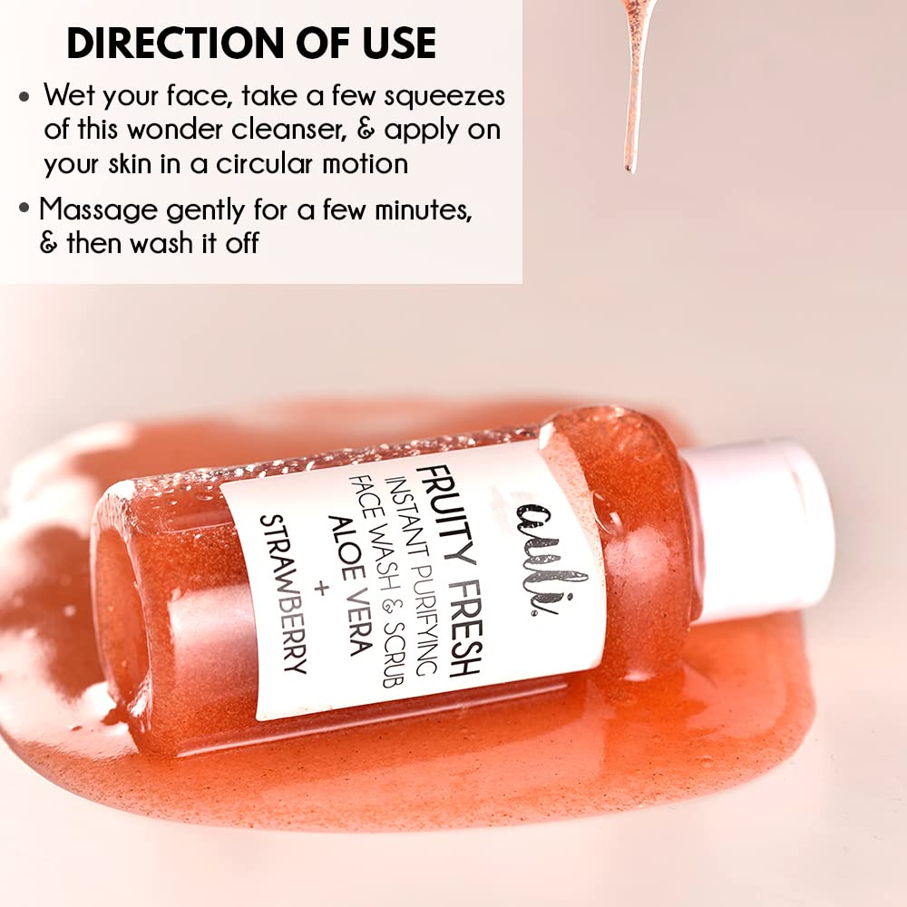 HomeBeautyFace CareCleansersScrubs & ExfoliatorsAuli Fruity Fresh Strawberry Extracts and Lactic Acid Exfoliating Scrub for all skin types helps reduce dryness and removes dullness to brighten skin tone 100ML