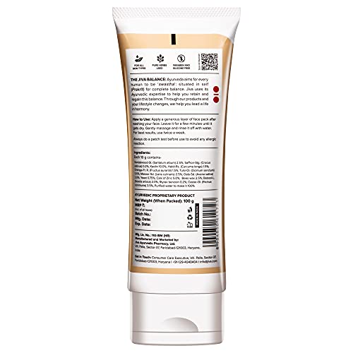 Jiva Kesar Ubtan Face Pack is enriched with the goodness of Saffron Sandalwood Turmeric Kaolin Orange Tulsi Masoor and Oats to offer you their ultimate skin benefits. As per Ayurveda Saffron (Kesar) is the best anti-blemish and fairness agent and is used for various beauty purposes for centuries. Rich in antioxidants Sandalwood has anti-ageing properties and helps fight skin damage caused by free radicals. It has a soothing and calming effect on inflammation caused by pimples and acne and prevents prickly heat. It also helps reduce the appearance of blemishes and dark spots. Oatmeal is highly absorptive and hypoallergenic and helps to soften the skin. Masoor (Red lentil) has excellent cleansing properties. This paraben and silicone-free face pack is made of pure herbs and is suitable for use for all skin types.