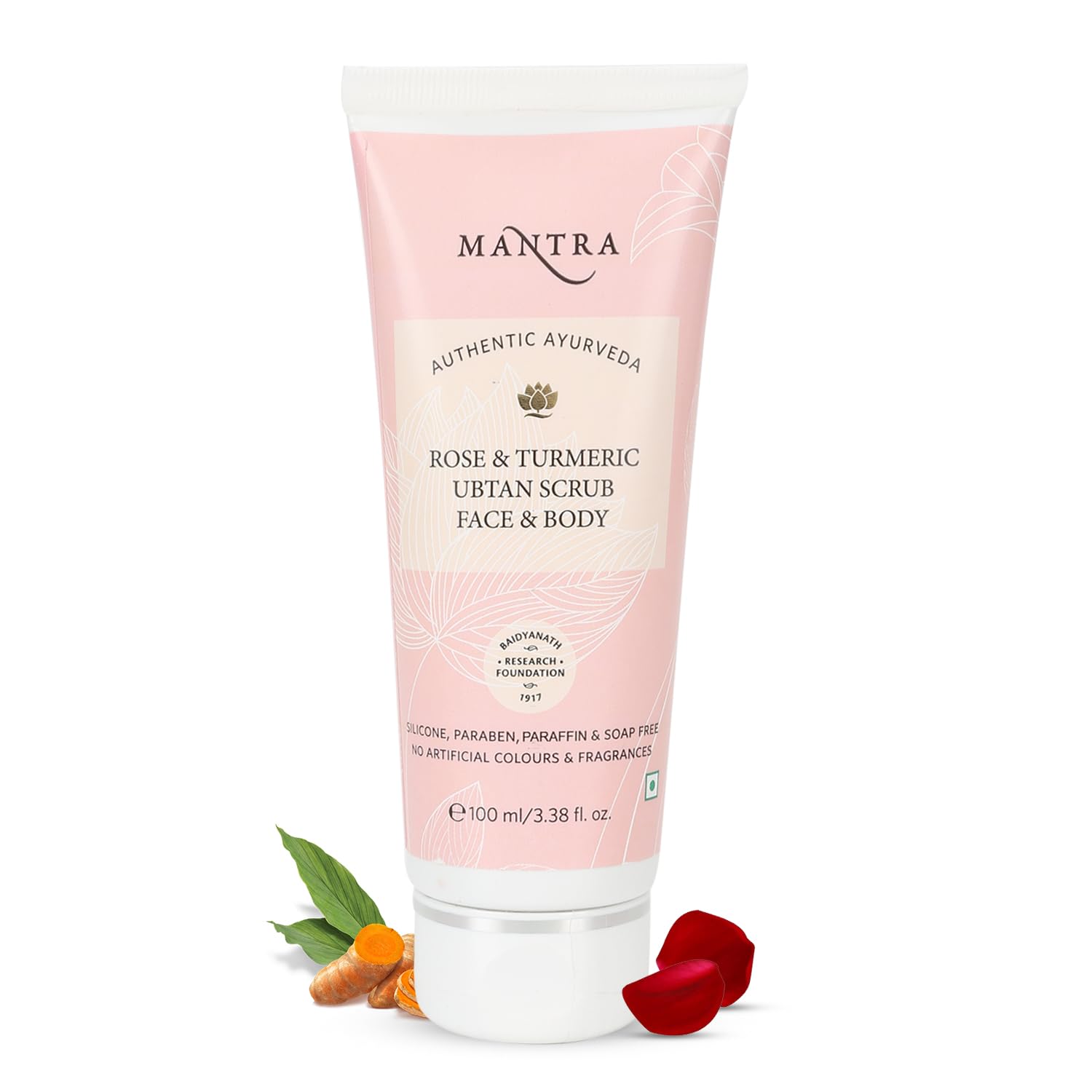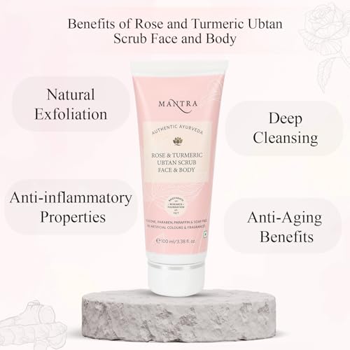 Mantra Herbal Rose & Turmeric Ubtan Scrub Face & Body - 100 ml | Brighten Complexion, Reduce Unwanted Skin Cells, Reduce Inflammation, and Enhance Overall Skin