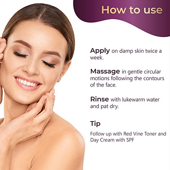 • SUITABLE FOR DRY NORMAL OILY COMBINATION & SENSITIVE SKIN: Our Red Vine Face Scrub has a high level of minerals and prevents ageing by reducing fine lines and wrinkles. It revitalizes renews & softens skin with an efficient natural exfoliation. It's the p