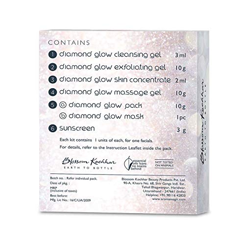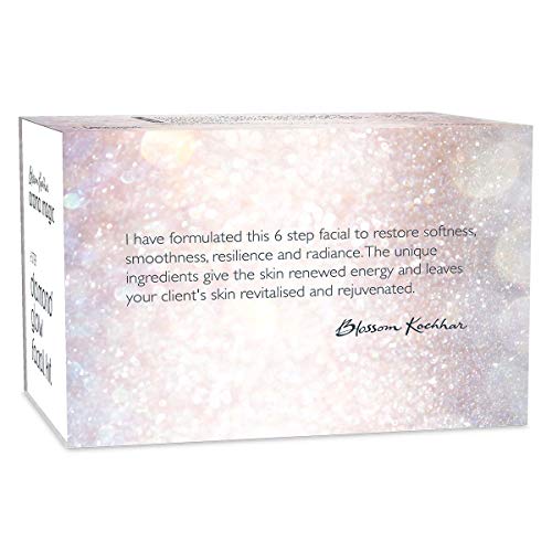 I have formulated this 6 step facial to restore softness smoothness resilience and radiance. The unique ingredients give the skin renewed energy and leaves your client; super skin revitalised and rejuvenated. - Dr. Blossom kochhar vital information: duration - 55 minutes frequency - once in 15 days equipment to use: galvanic machine Step1 diamond glow cleansing gel step 2 diamond glow exfoliating gel step 3 diamond glow skin concentrate step 4 diamond glow massage gel step 5 (a) diamond glow pack net (b) diamond glow mask step 6 sunscreen.