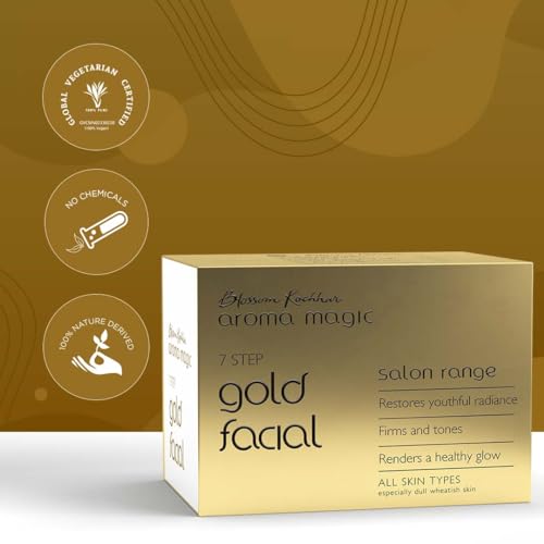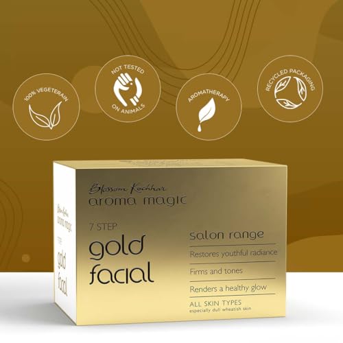 Aroma Magic 7 step Gold Facial Kit | Firms, Tones & Renders a healthy glowing skin| with Marigold & Rose Extracts| All Skin type| Big Pack of 1