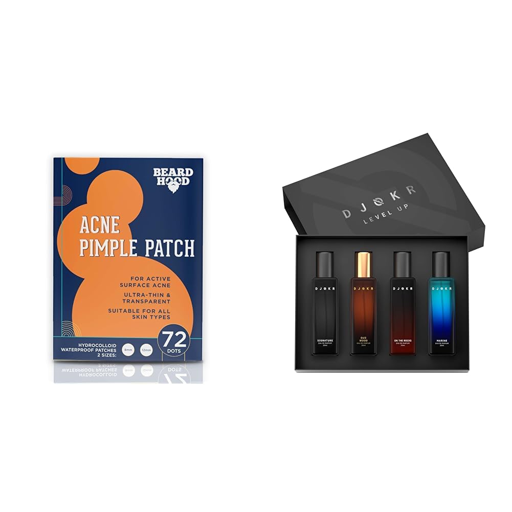 Beardhood Acne Pimple Patch | 72 Hydrocolloid Waterproof Patche and Djokr Perfume Gift Set for Men Pack of 4x20 ML