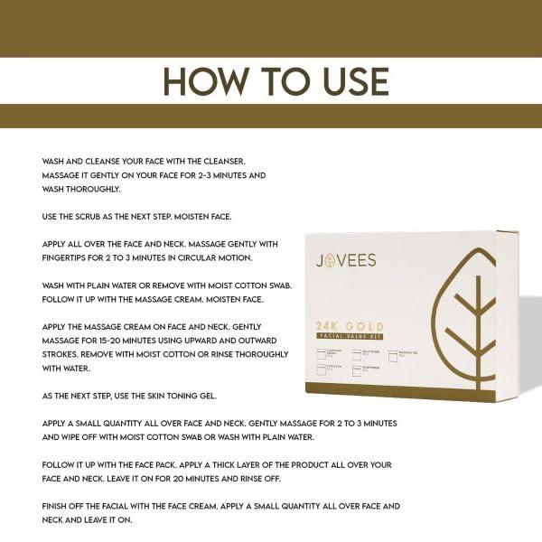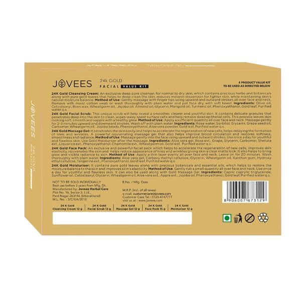 HomeBeautyFace CareFacial KitsJovees Herbal Mini 24 Carat Gold Facial Value Kit With 5 Easy Step Organic Facial Kit For Natural Golden Glow, Radiant & Luminous Skin All Skin Types 75g