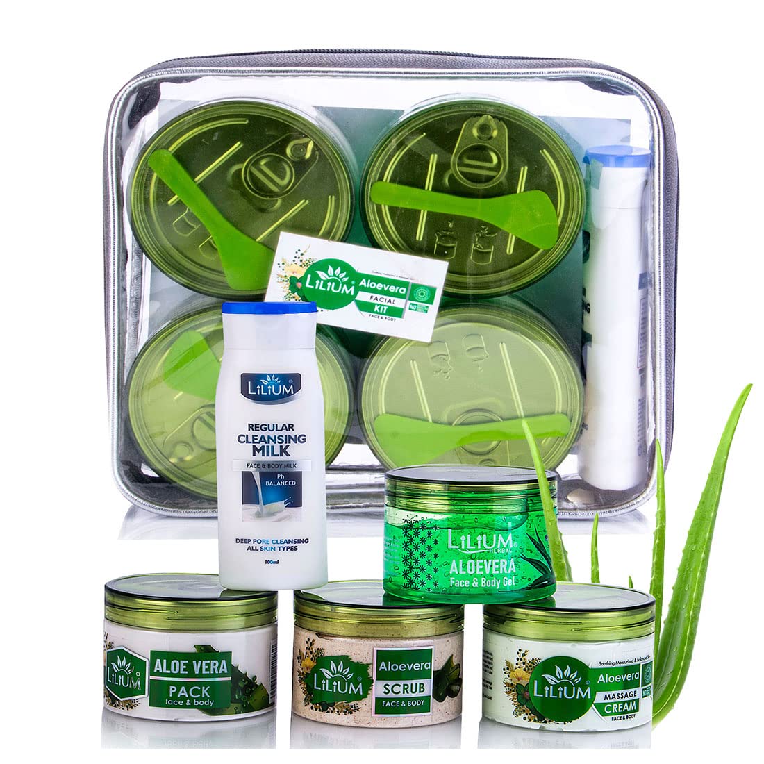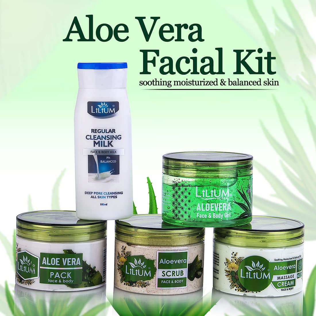 HomeBeautyFace CareFacial KitsLilium Aloe Vera Facial Kit 1100g | Complete Skincare Set For Deep Hydration & Radiant Glow | Gentle Cleansing & Soothing | For Women & Men | 100% Vegan & Chemical Free | All Skin Types