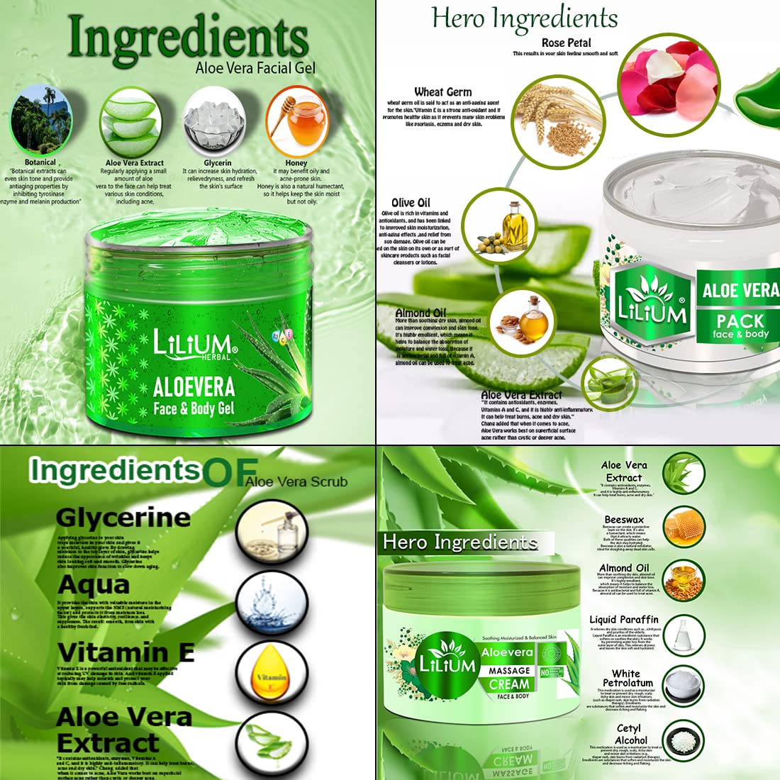 Lilium Aloe Vera Facial Kit 1100g | Complete Skincare Set For Deep Hydration & Radiant Glow | Gentle Cleansing & Soothing | For Women & Men | 100% Vegan & Chemical Free | All Skin Types