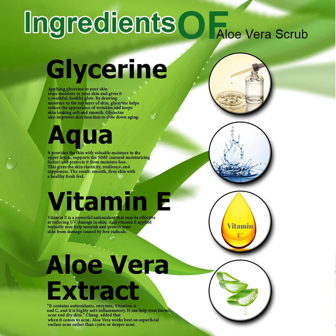 Step 1 and Benefits: Aloevera facial scrub is mild and pH-balanced to gently deep cleanse your pores of impurities while keeping your skin moisturized. It contains Aloevera Extract to keep skin supple and reduce the appearance of wrinkles and fine lines a